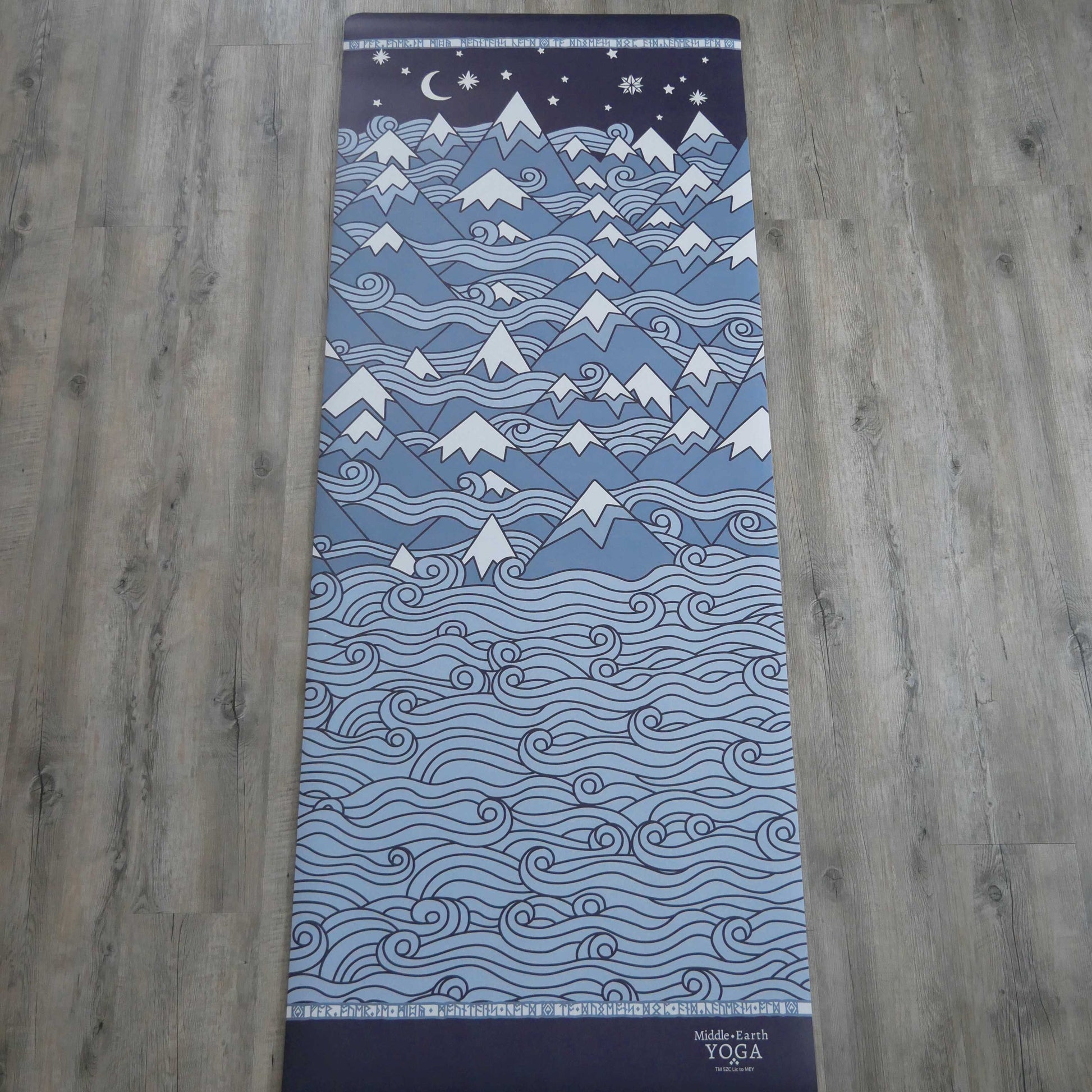 This yoga mat features an illustrative pattern inspired by the Lord of the Rings™ and the Hobbit™. The Misty Mountains appear throughout Tolkien’s works; a perennial symbol of obstacles on the journey to peace. They stand lost in swathes of snow and cloud and ice, seemingly impassable and yet in every tale, they are overcome...