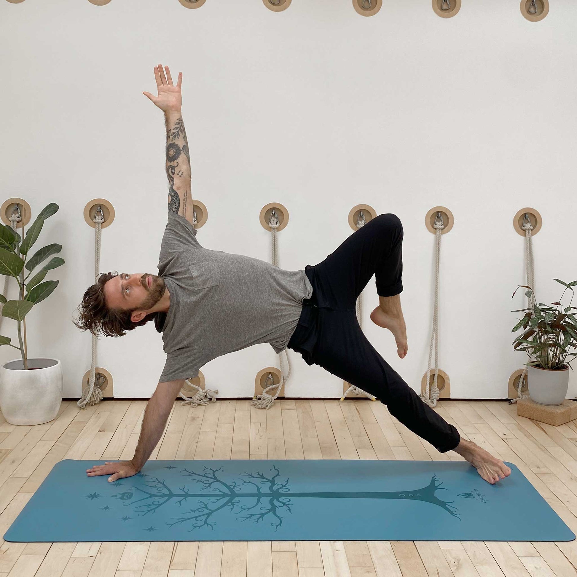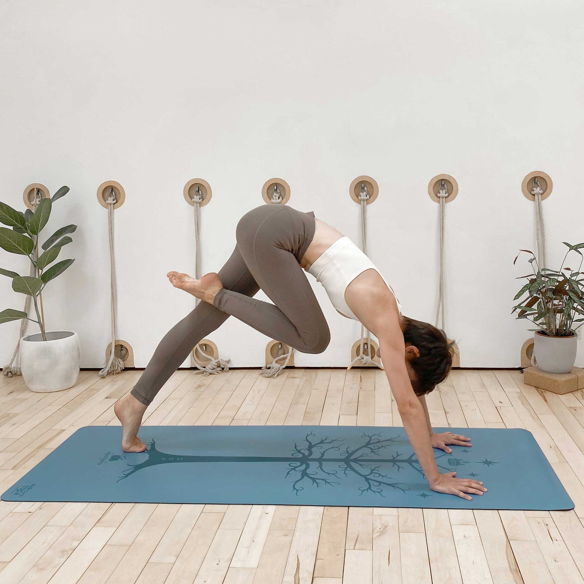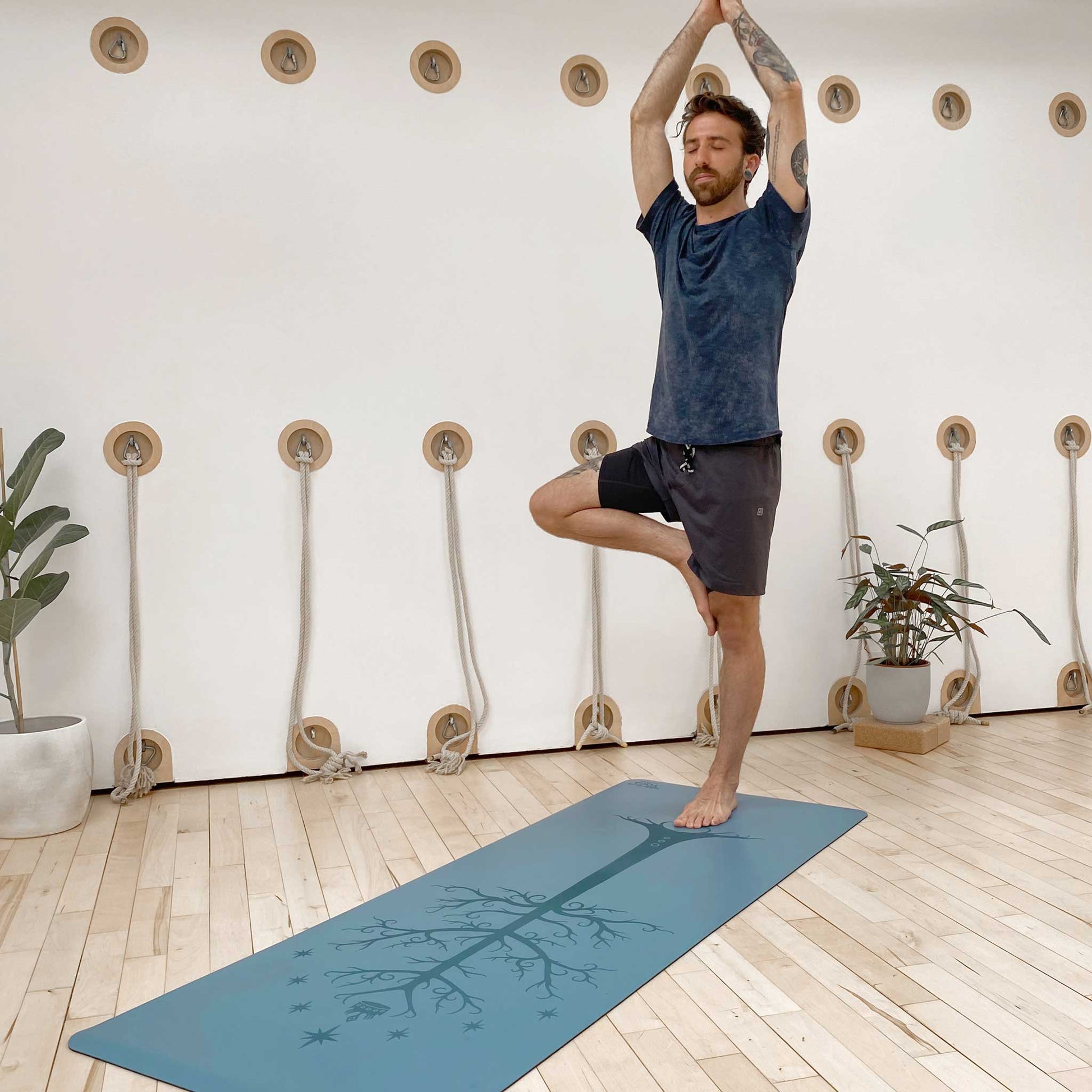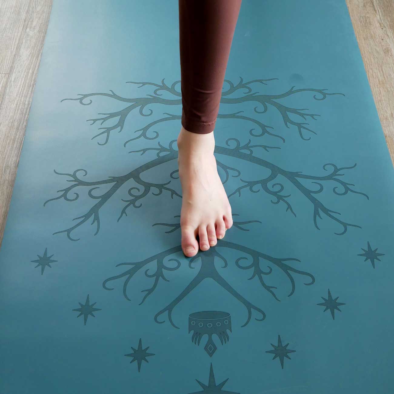 As soon as I saw this on IG, I knew I had to have it and am totally obsessed! I’ve had it for about a year now and it is still my favorite. The grip is amazing and consistent, it’s easy to clean, and the tree provides a great and creative alignment guide! The color is true to the pictures and still hasn’t faded. Absolutely love this mat.